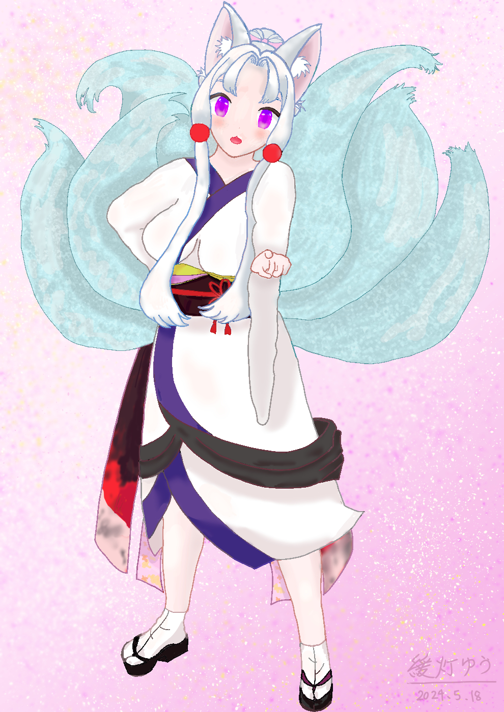 尻尾と恥ずかしさのあまり、ツンツンしている様子を表現できるように描きました。